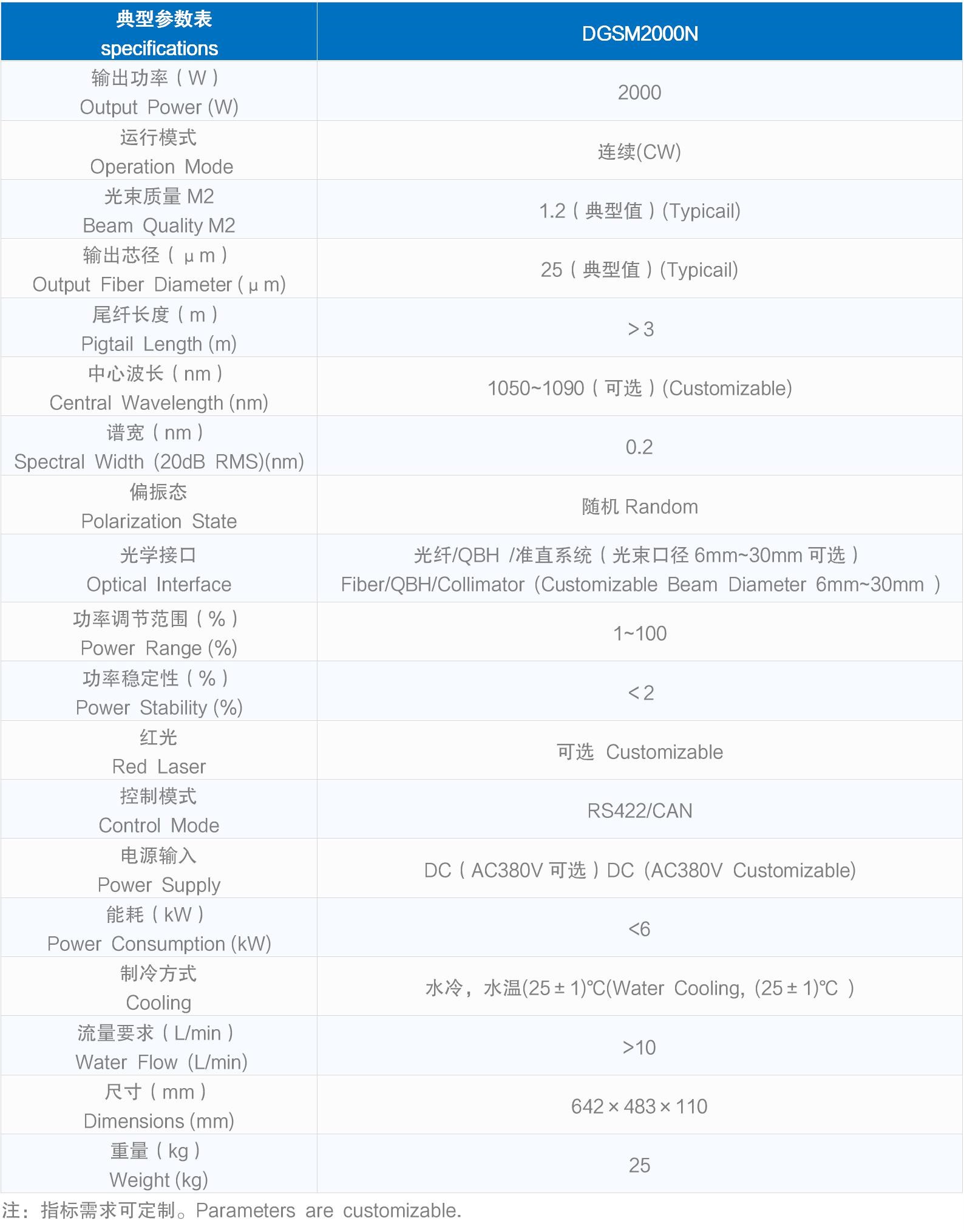 光學(xué)接口 Optical Interface | 光纖/QBH /準(zhǔn)直系統(tǒng)(光束口徑6mm~30mm可選) Fiber/QBH/Collimator (Customizable Beam Diameter 6mm~30mm ) | |