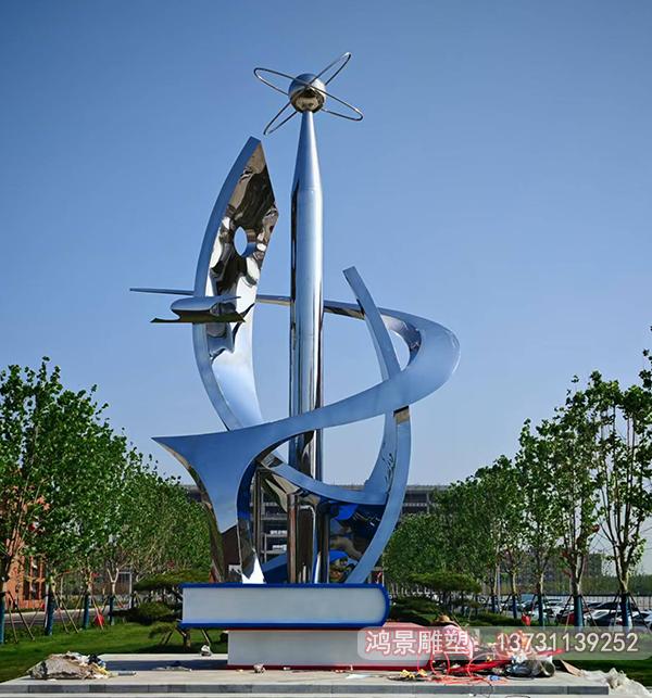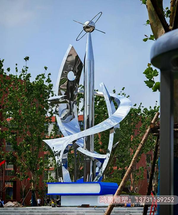 這座校園科技創(chuàng)新雕塑安裝于山東濱州職業(yè)科技學(xué)院,以現(xiàn)代簡(jiǎn)約的不銹鋼材質(zhì)打造,整體造型猶如一束躍動(dòng)的智慧之光。主體采用鏡面拋光工藝的不銹鋼板,經(jīng)過(guò)精密激光切割后形成錯(cuò)落有致的幾何切面,在陽(yáng)光下折射出璀璨的科技光芒。雕塑基座鑲嵌著校徽浮雕,采用化學(xué)蝕刻工藝將校訓(xùn)文字與齒輪、芯片等科技元素完美融合。