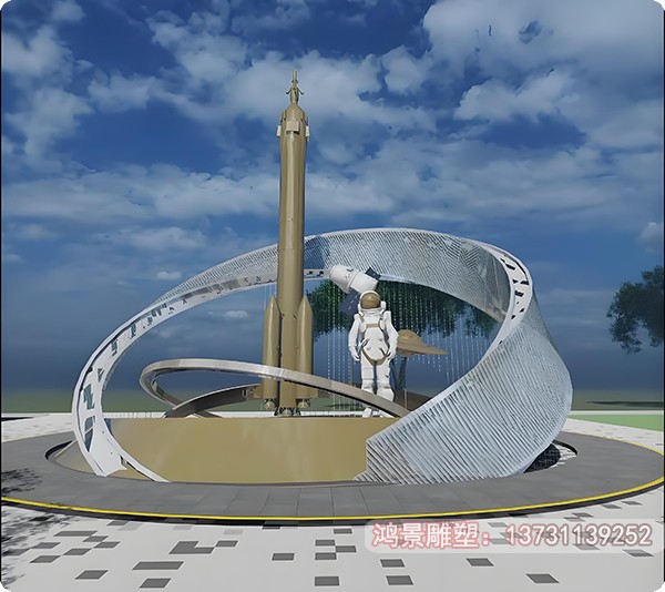 這座不銹鋼航空火箭宇航員組合雕塑以現(xiàn)代工業(yè)美學為基調(diào),采用鏡面拋光工藝打造,通體流轉(zhuǎn)著冷冽的金屬光澤;鸺黧w以流線型設(shè)計向上延伸,箭體表面精密蝕刻著模擬真實航天器的結(jié)構(gòu)紋路,在陽光下折射出星辰般的碎芒。宇航員形象采用抽象化處理,其頭盔面罩通過多棱面切割工藝形成萬花筒般的反光效果,與火箭尾翼處激光雕刻的離子火焰紋樣形成虛實相生的視覺韻律。