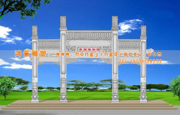 石雕牌坊設(shè)計是牌樓的一種分類。石家莊鴻景不銹鋼雕塑廠專業(yè)制作各種石雕牌坊設(shè)計,如有需要石雕牌坊設(shè)計歡迎聯(lián)系我們,我們免費為您提供石雕牌坊設(shè)計圖片,石雕牌坊設(shè)計價格等相關(guān)信息。石雕牌坊設(shè)計圖片由石家莊鴻景不銹鋼雕塑廠2015年03月07日上傳,歡迎撥打鴻景雕塑公司電話,我們?yōu)槟峁└嗟氖衽品辉O(shè)計資料信息。石家莊鴻景不銹鋼雕塑廠推薦查看跟石雕牌坊設(shè)計相關(guān)的產(chǎn)品信息:石雕,牌坊,設(shè)計